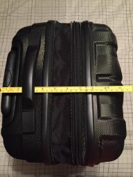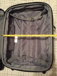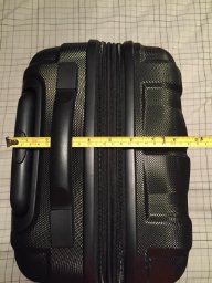 Construction: It’s a sturdy little case, wheels glide well, are mounted securely, zippers are heavy duty (I lubricated them with graphite too), lock mechanism is handy but I wish the dials were a little larger to make turning easier, exterior is durable, and the extending handle is sufficiently long enough for my 6′ frame to pull comfortably but is not as sturdy as I’d like it to be (I hope it holds up). Balance: I had a laptop case which slid over the extended handle just fine. Upright the case pushed along fine and did not topple, even going up and down ramps. Casters swiveled just fine and I wheeled like this through the aisle on the plane. Pulling it behind me however, it tended to want to flip to it’s side, this was probably due to my laptop case not staying perfectly balanced on the extended handle which caused the weight to shift. Capacity: I packed the following: (1) Bathroom bag (9.7 x 9.1 x 2.9 inches) Expanded the case when packing, then compressed it when full. No capacity problem at all. Overhead Compartment Sizing: No issue what so ever Overall, a great buy. ** 8/22/14 Update Still very impressed by this luggage piece, I’ve had an opportunity to use it a number of times thus far. One trip I threw an extra pair of shoes in and a heavier jacket, so I left the bag in it’s expanded mode. No issues of it fitting within the overhead compartment. Regarding my earlier dial security lock comment, well… it’s a carry on and only leaves my sight when the overhead door shuts. So, I find myself not even locking it. Essentially, a non-issue. Regarding the handle: It’s still holding up as if it was new. I guess it’s stronger than it first appears. 0